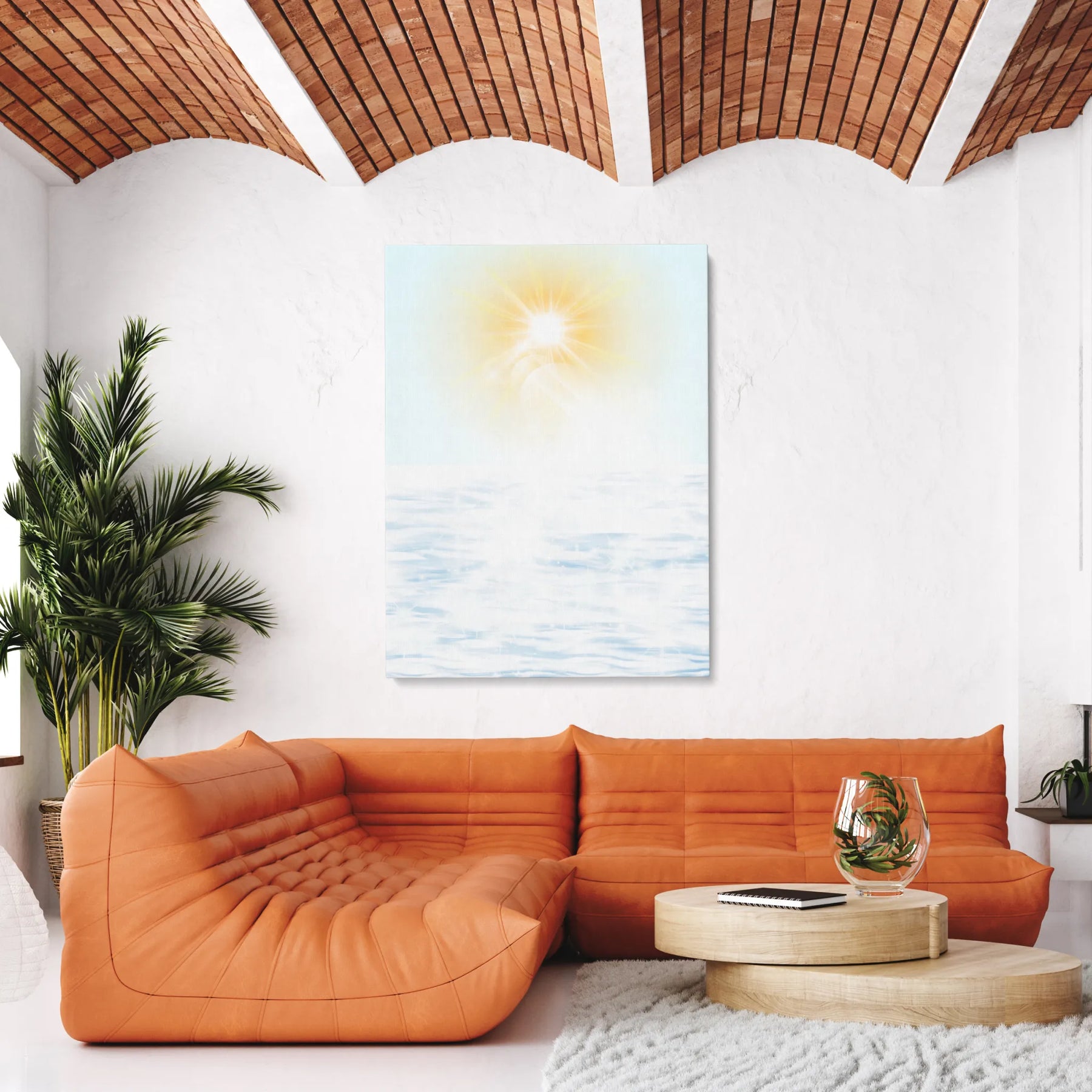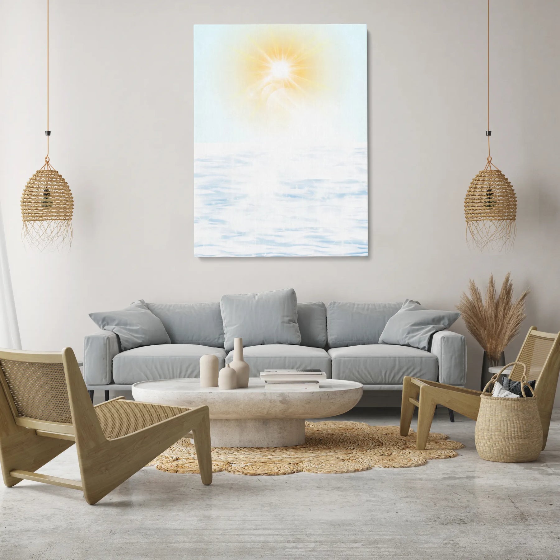„Sea of Light“ ist eine visuelle Meditation über Reinheit, Weite und die stille Kraft des Lichts. Die aufsteigende Sonne entfaltet sich in goldenen Strahlen, die den Himmel mit Wärme durchfluten und sich sanft auf der Wasseroberfläche brechen. Die Grenze zwischen Himmel und Meer löst sich beinahe auf – ein Übergang, der an Momente erinnert, in denen Zeit und Gedanke verschwinden und nur noch Präsenz bleibt.